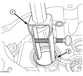 4. Remove input shaft seal with Slide Hammer C-637 (1) and Puller 7794-A (2).