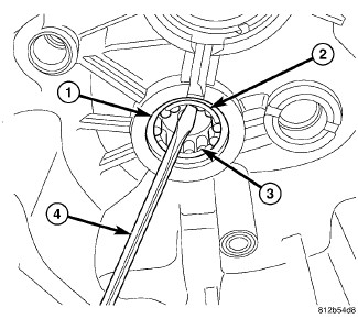 4. Remove mainshaft bearing cup snap ring (2).