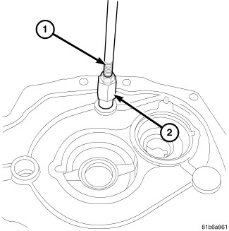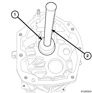 2. Remove shift rail bushing with Slide Hammer C-3752 (1) and Remover 6786 (2).