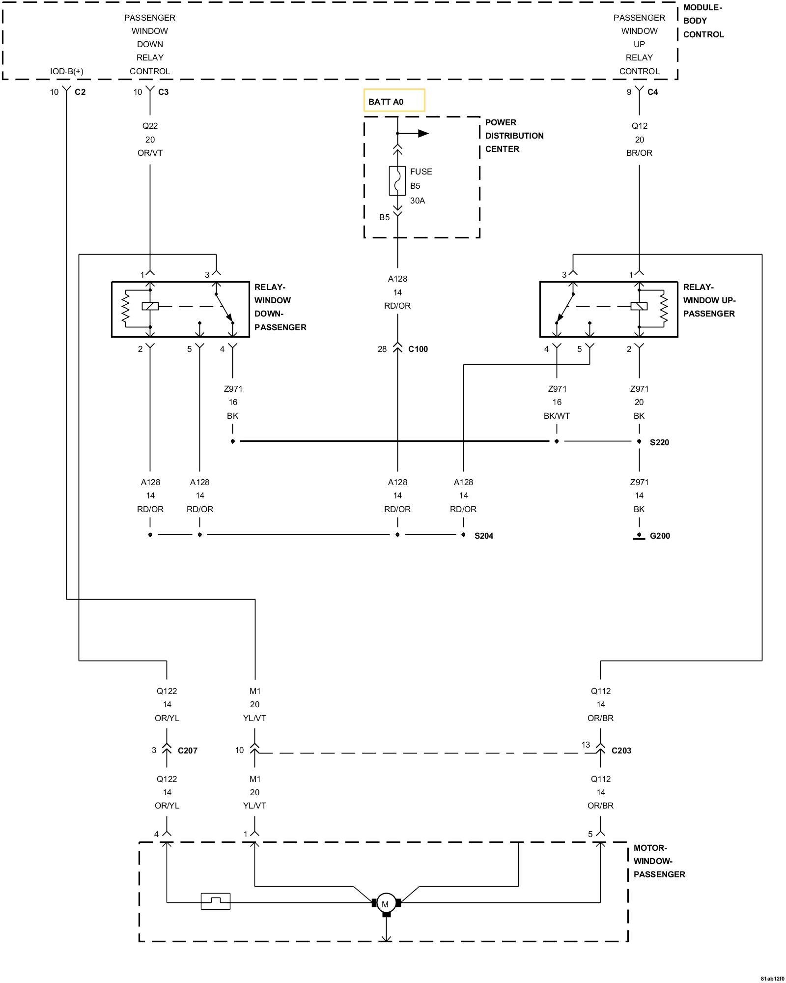 - Repair the (Q122) Passenger Window Down Relay Output wire for an open.