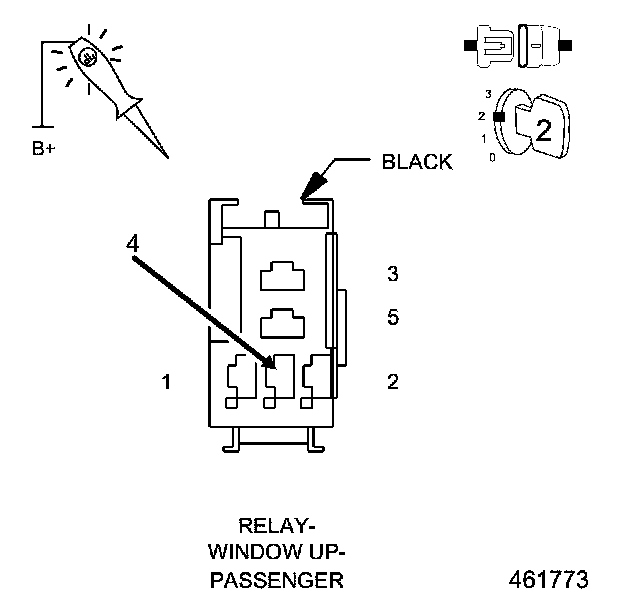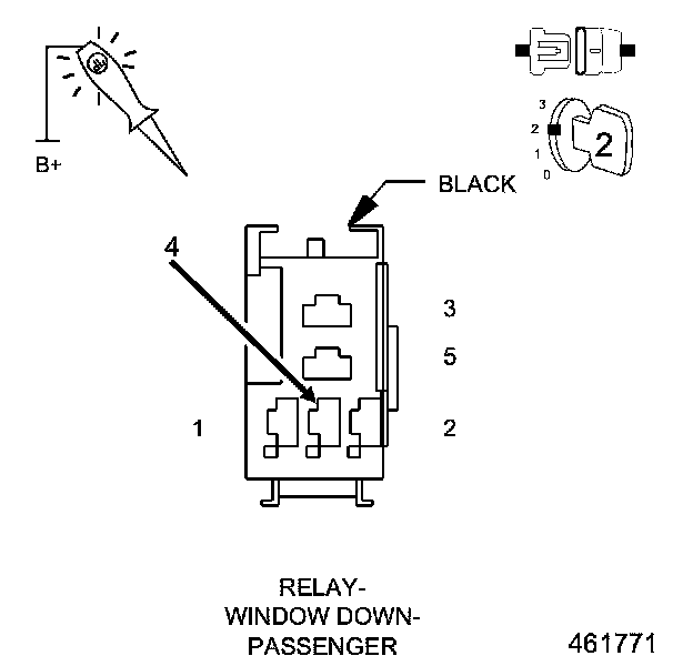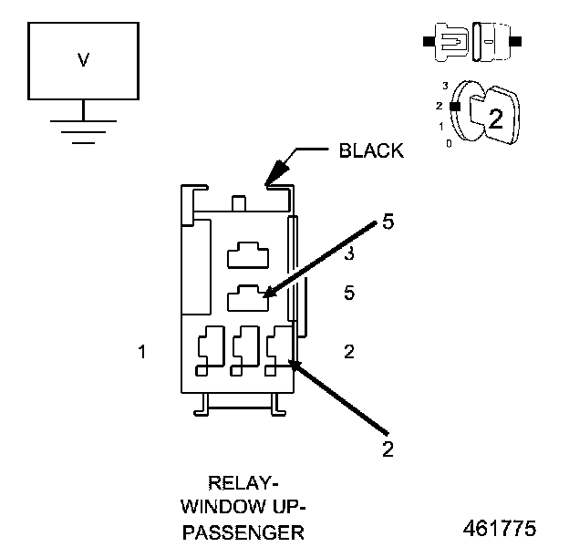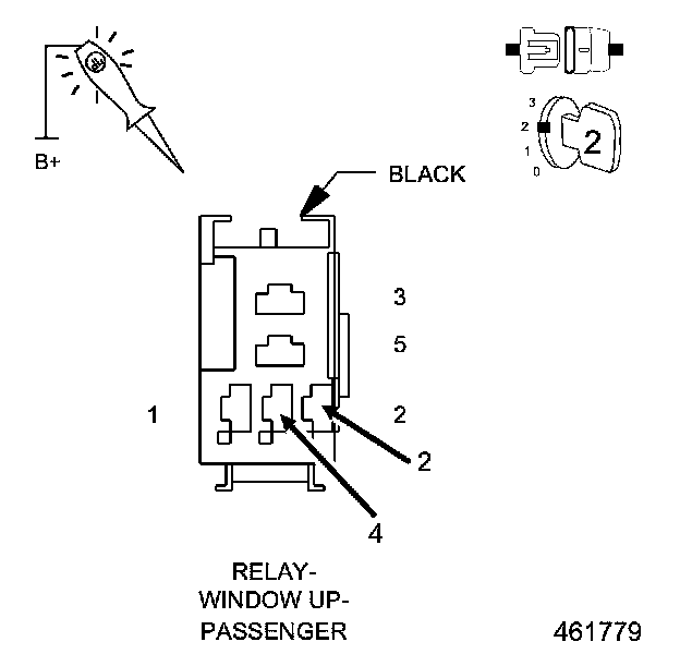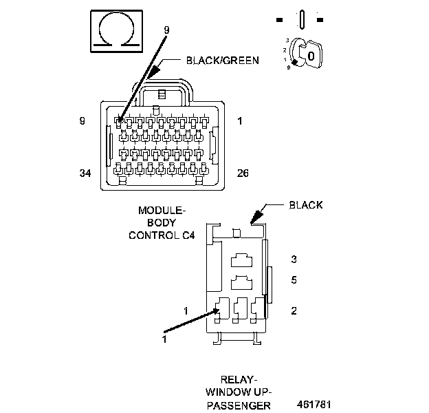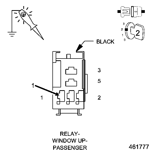 1. Using a 12-volt test light connected to 12-volts, check the (Z971) Relay Ground by probing the (Q112) Passenger Window Up Relay Output circuit in the motor connector.