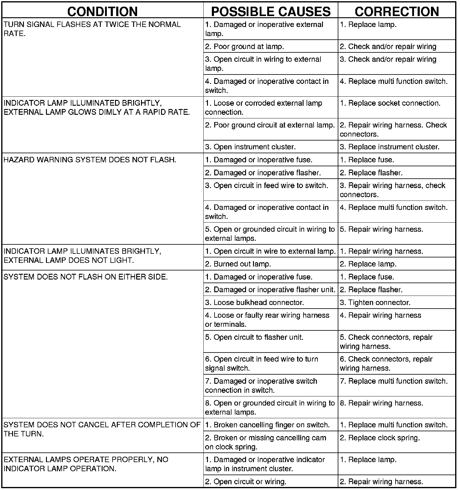 TURN SIGNAL AND HAZARD WARNING FLASHER DIAGNOSIS