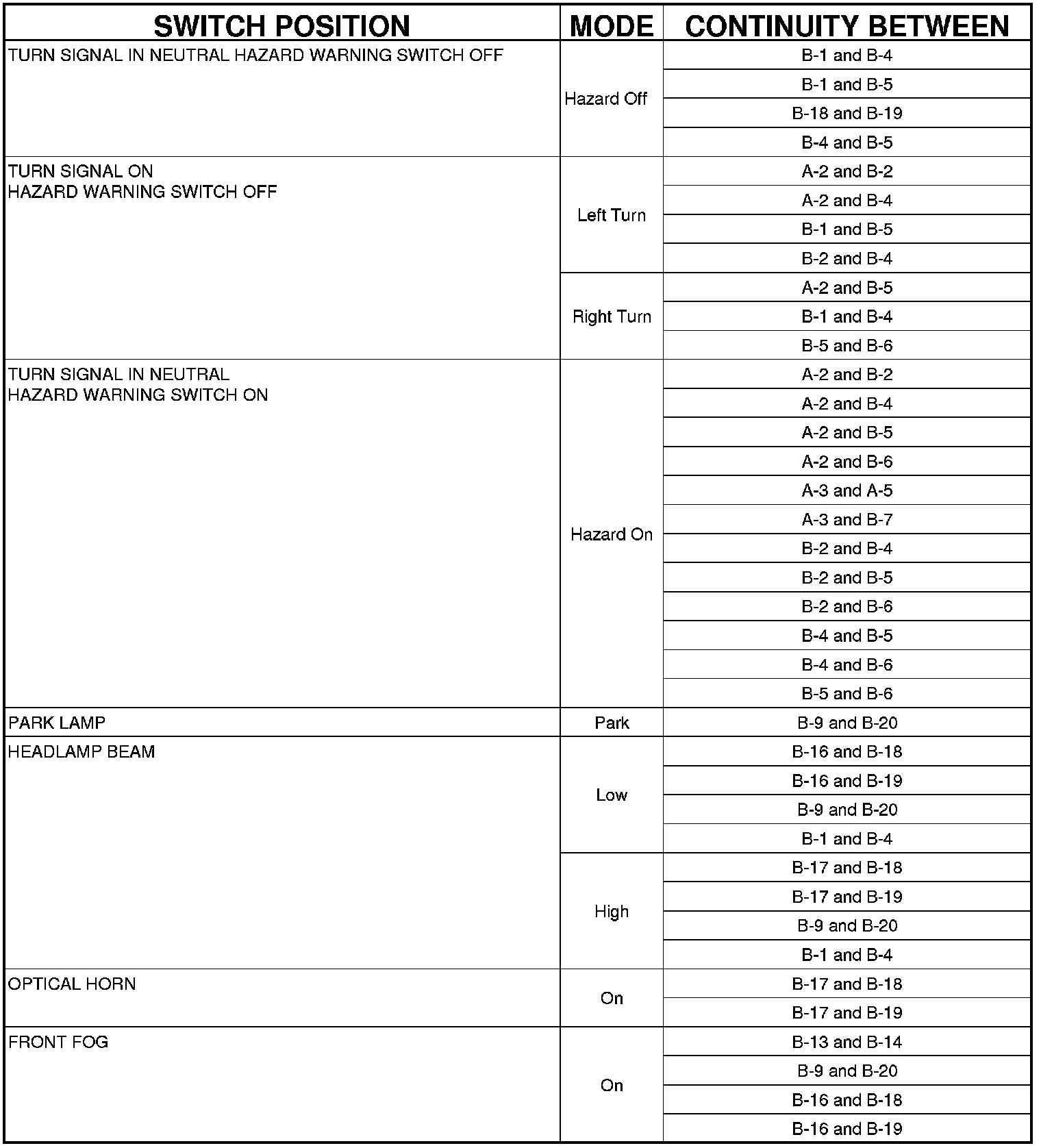 MULTI-FUNCTION SWITCH CONTINUITY TEST