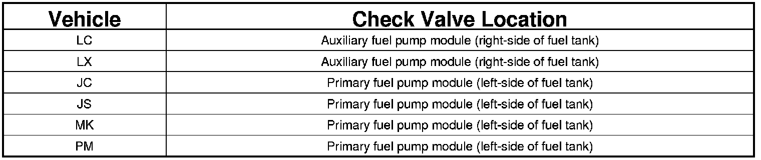 - Replace the appropriate fuel pump module as indicated in the table below.