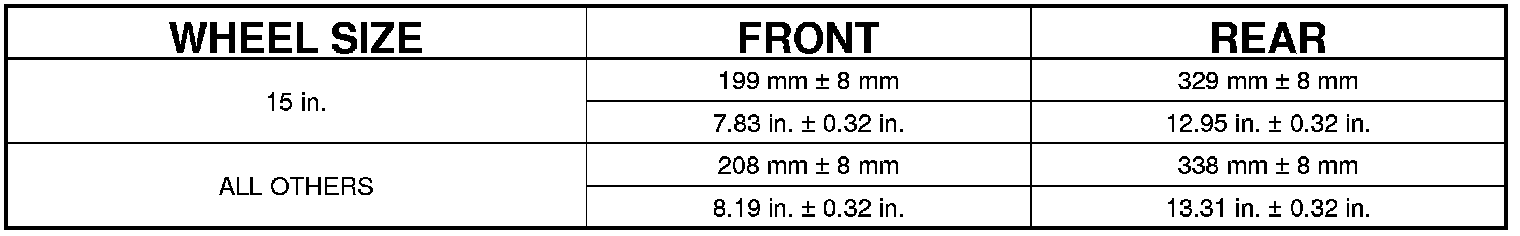 CURB HEIGHT SPECIFICATIONS - 2.0L GAS ENGINE