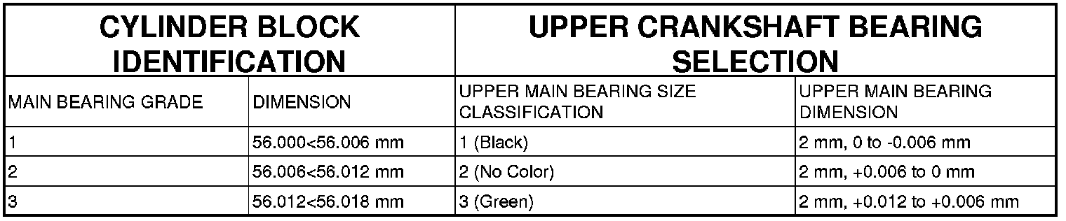 CRANKSHAFT MAIN BEARINGCAUTION: Before tightening bolts, you must identify the bolt head to obtain the correct torque value. Failure to identify the bolts correctly, could result in improperly tightened bolts which could result in engine damage.