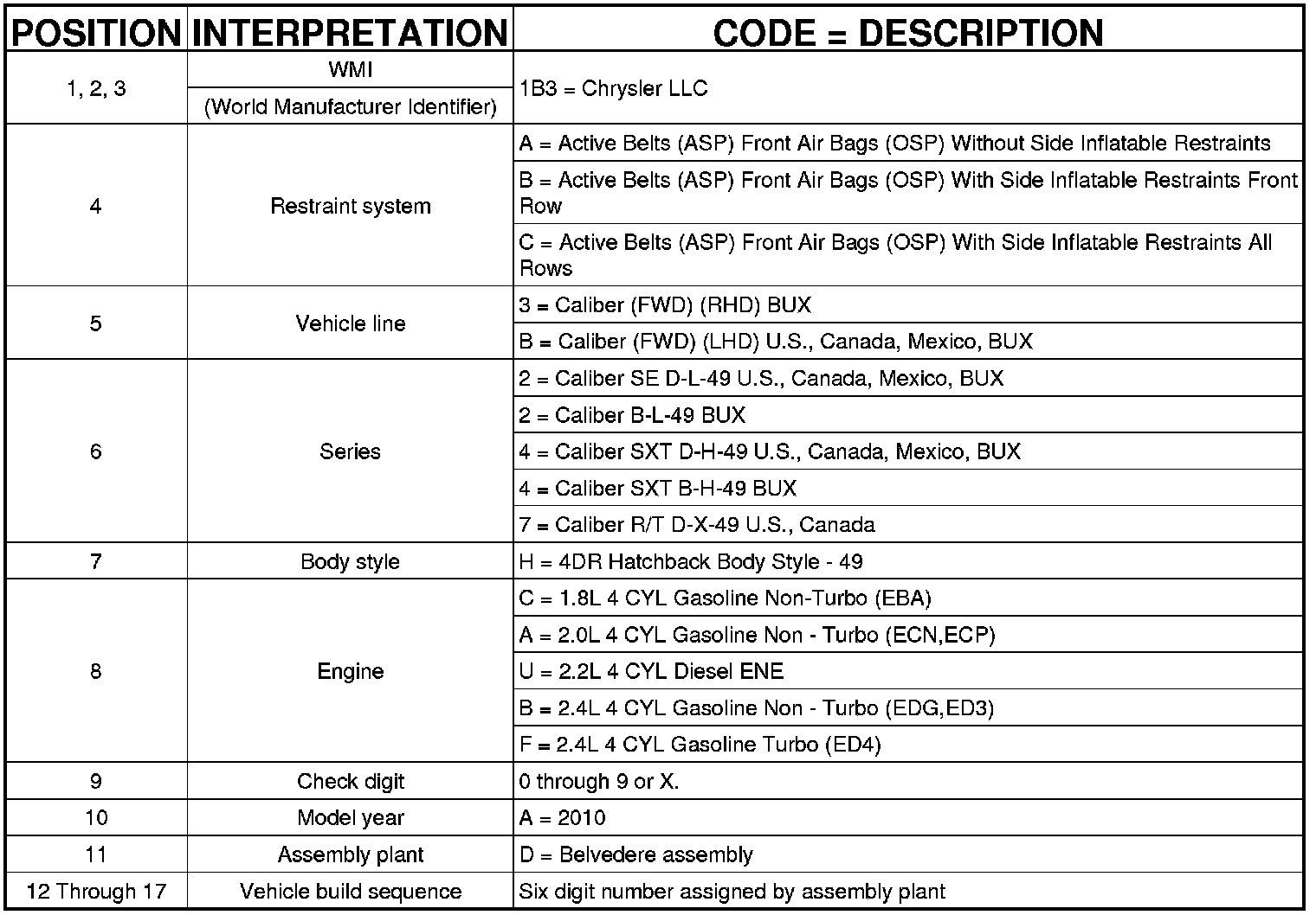 The Vehicle Identification Number (VIN) (1) is located on the upper left corner of the instrument panel (2), near the left A-pillar. The VIN consists of 17 characters in a combination of letters and numbers that provide specific information about the vehicle. Refer to VIN Code Decoding chart.