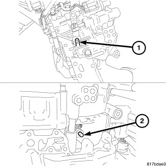 68. Install the new oil strainer (1) onto the valve body assembly. Install and tighten the mounting bolts to 8 Nm (70 in. lbs.).