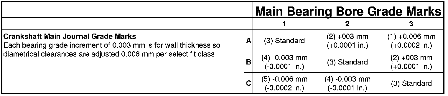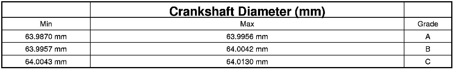 Main Bearing Diametrical Clearance 0.032 - 0.062 mm (0.0013 - 0.0024 in.)