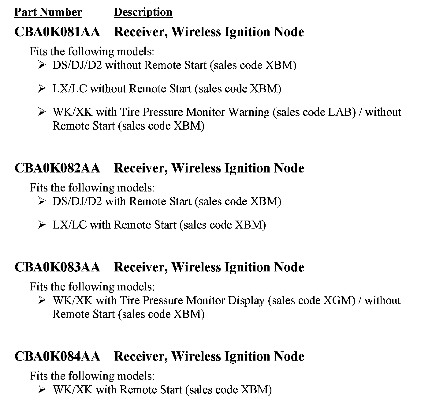 Due to the small number of involved vehicles expected to require a Wireless Ignition Node (WIN) receiver, no parts will be distributed initially. WIN receivers should be ordered only after inspection determines that replacement is required. Very few vehicles are expected to require WIN replacement.
