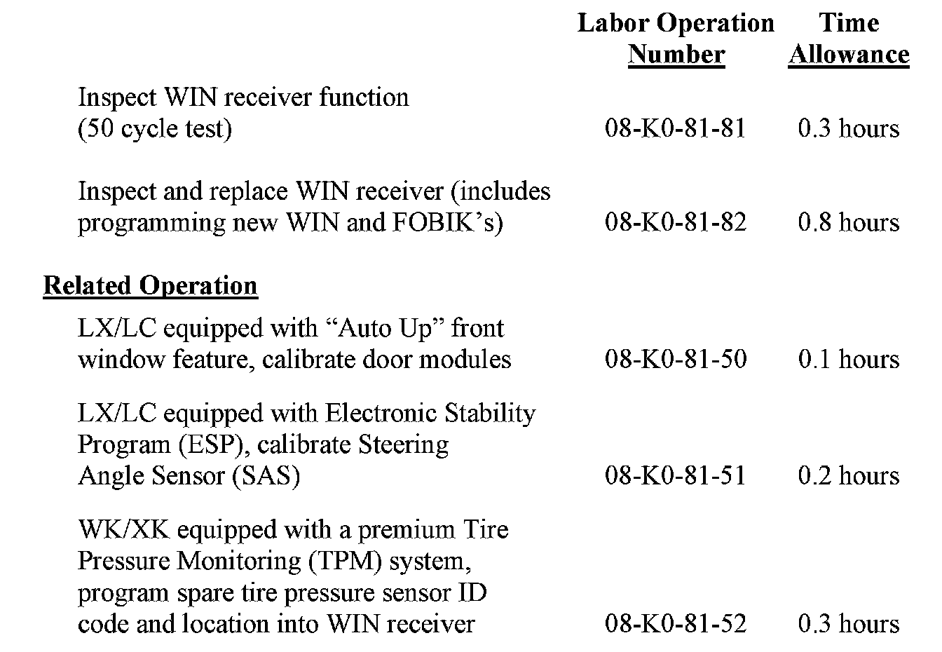 Use the labor operation numbers and time allowances shown.