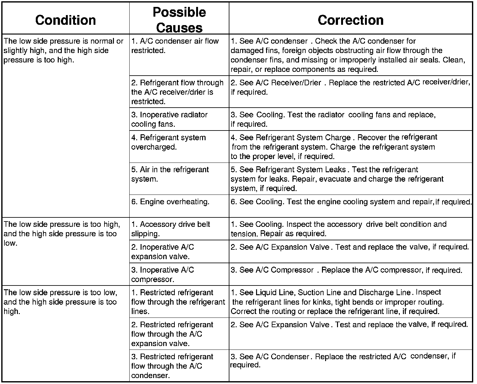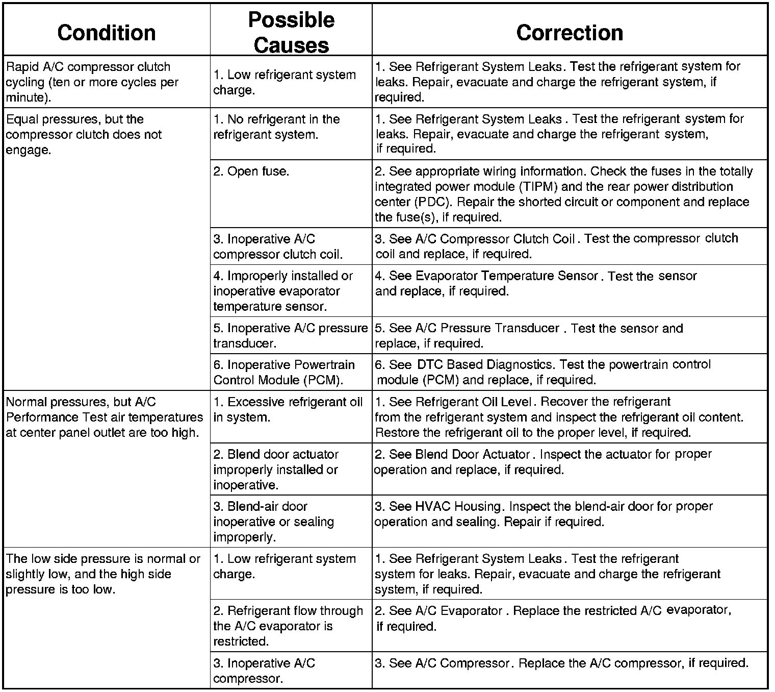 - A/C-heater controls set to Recirculation mode, full cool, panel mode, high blower and with A/C compressor engaged. If the A/C compressor does not engage, see the A/C System Diagnosis table