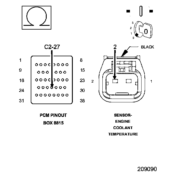 1. Using the wiring diagram/schematic as a guide, inspect the wiring and connectors between the Engine Coolant Temperature Sensor and the Powertrain Control Module (PCM).