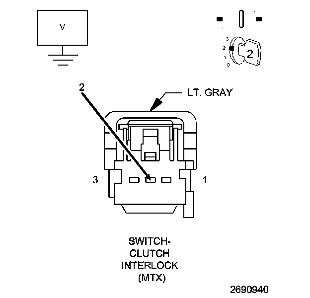 4. With the clutch pedal in the fully depressed position, observe the ohmmeter while slowly releasing the clutch pedal to the fully released position.