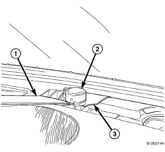 3. Using Trim Stick C-4775 (1) or equivalent, gently pry between both sides of the sun sensor assembly (2) and the instrument panel (3) to release the snap clip retainers that secure the sun sensor.