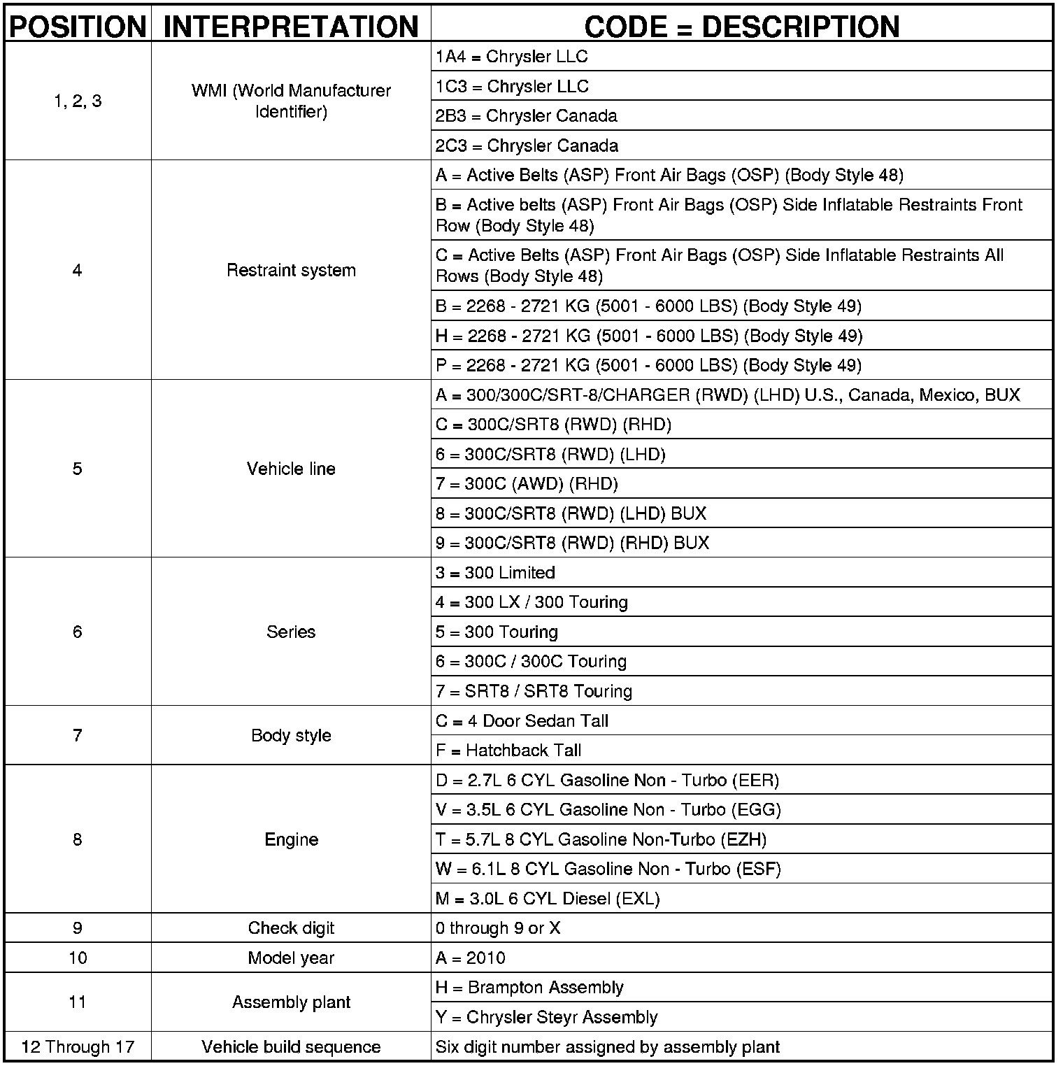 VIN DECODING INFORMATION