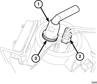 15. Press the quick connect release tab (3) and remove the fuel supply line (1).