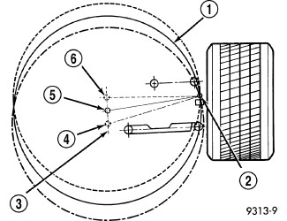 13. Plot toe readings for front suspension on Dynamic Toe Pattern Graph provided. If toe pattern arc is within allotted range, front toe pattern is within limits. If toe pattern is not within allotted range, steering gear must be raised or lowered to achieve proper toe pattern.