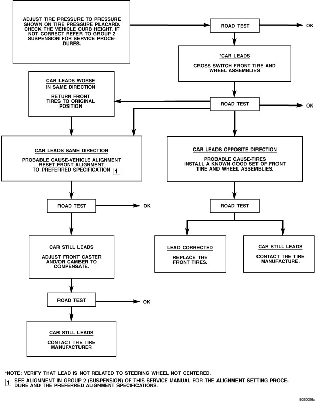 Use the following diagnosis chart to aid in diagnosing and correcting a vehicle lead or drift problem.