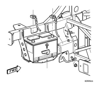 6. Remove battery temperature sensor (1) from battery tray (2).