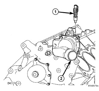The engine coolant temperature sensor threads into the timing chain cover at the left front side of the engine.