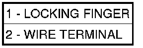 6. Using a small screwdriver lift locking finger (1) away from terminal (2) and push terminal out of connector. Remove the fuel level sensor signal and ground terminals out of the connector.