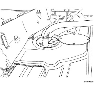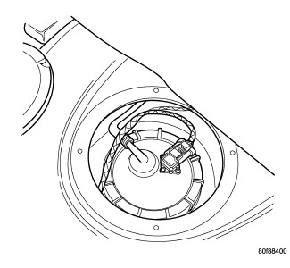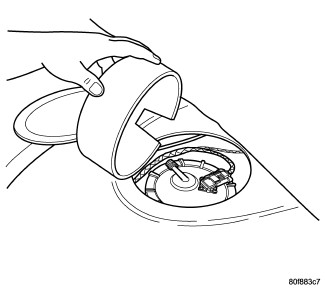 15. Lift module up to remove being careful not to spill the residual fuel that is left in it. The float arm of the level sensor catches on the inside of the fuel tank while removing the module. Tilt the module assembly to one side while removing it. Discard old seal.