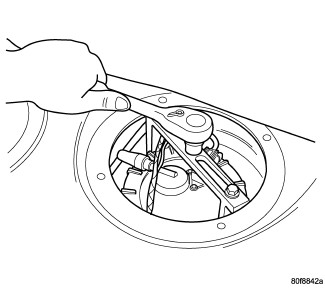 14. Use Special Tool #6856 to remove fuel pump module locknut.