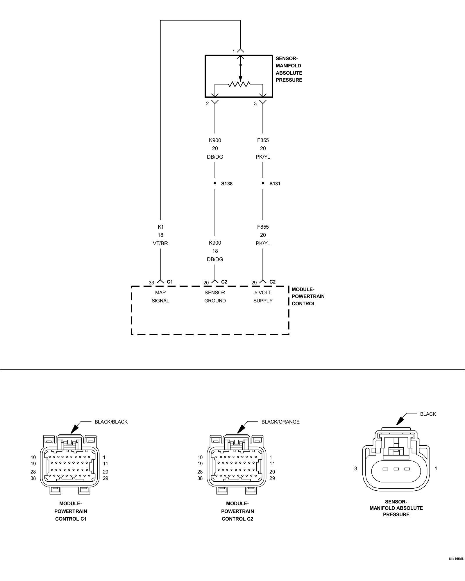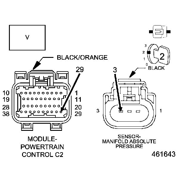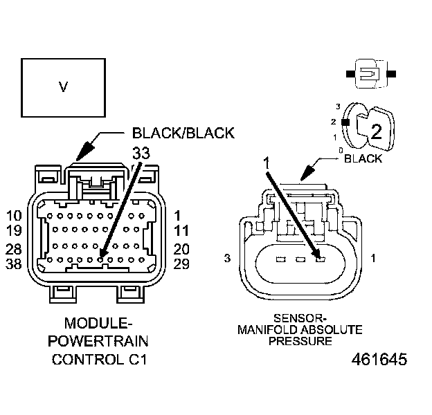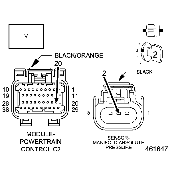 1. Using the wiring diagram/schematic as a guide, inspect the wiring and connectors between the MAP Sensor and the Powertrain Control Module (PCM).