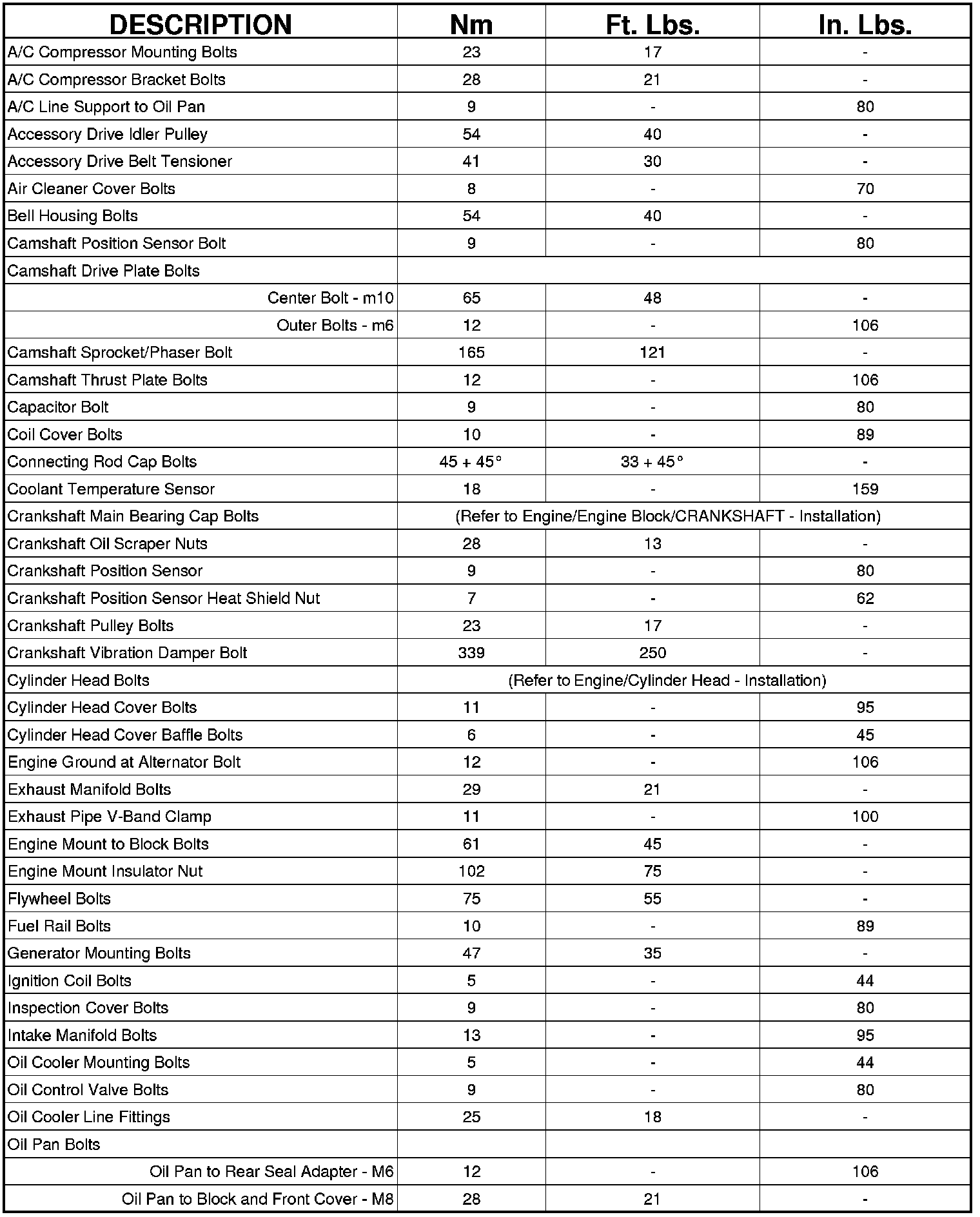 Engine Torque Specifications