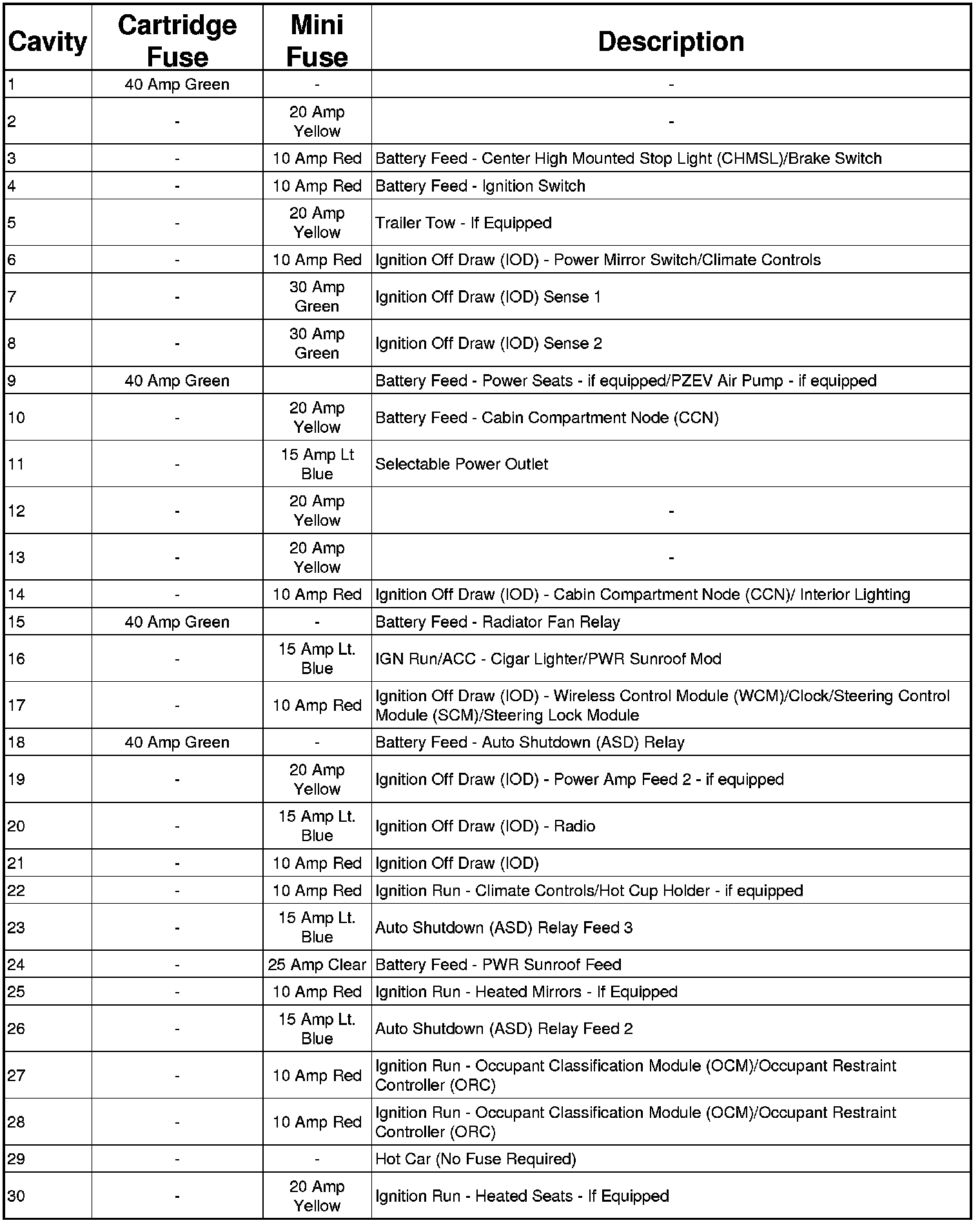 A Totally Integrated Power Module is located in the engine compartment near the air cleaner assembly. This center contains cartridge fuses and mini fuses.