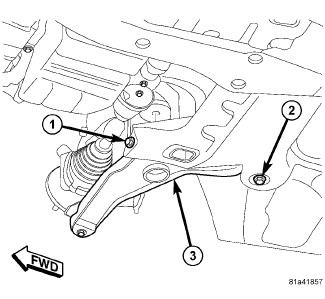 1. Place the lower control arm (3) into the front suspension crossmember.