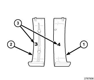 1. Wipe the main bearing inserts (1 and 2) clean.