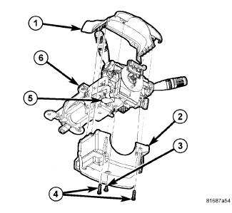 6. Install upper (1) and lower (2) steering column shrouds,Steering Column Shroud - Installation.