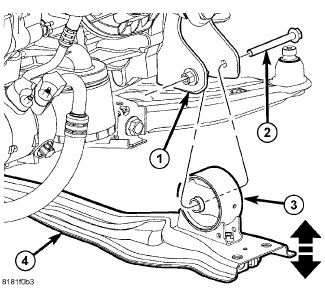 1. Install the fore/aft crossmember and install the engine anti-roll mount (3) through bolt (2).