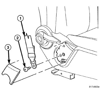 5. Tighten the bolt (2) to 32 Nm (23.5 ft. lbs.) and install the trim cover (3).