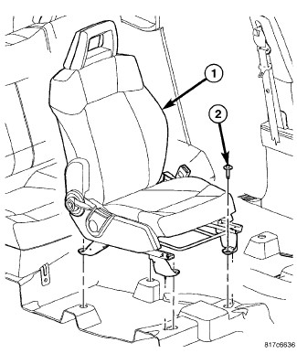 4. Install the lower seat belt anchor (1) and install the bolt (2).