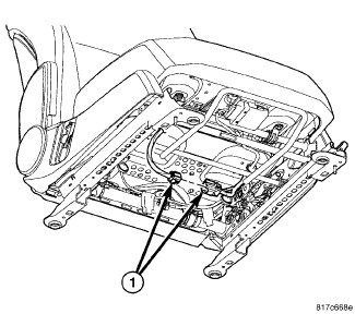 2. Position the seat into the vehicle and connect the electrical connectors (1), if equipped.