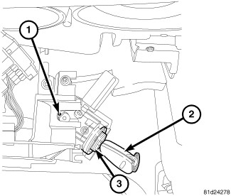 7. Install screw (1) fastening the SKREEM/WCM (2) to lock cylinder housing (3). Tighten screw to 2.5 Nm (22 in. lbs.).