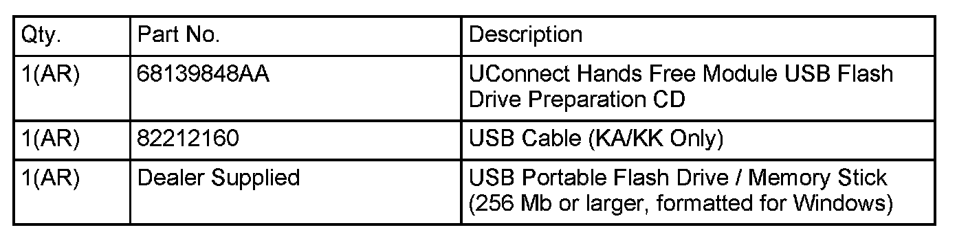 Only one UConnect Hands Free Module USB Flash Drive Preparation CD is required and this disk may be used to prepare multiple USB Flash Drives.