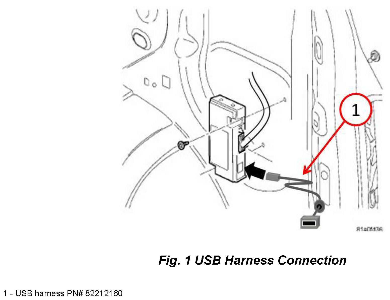 3. Connect the USB harness (PN # 82212160) as shown in (Fig. 1).
