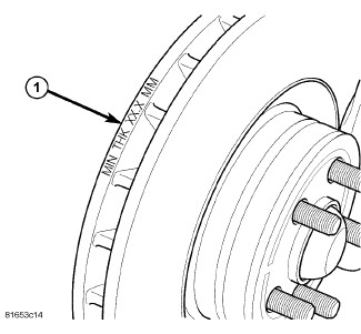 NOTE: The minimum thickness specification is stamped into the outer diameter edge (1) (along vented end) of the disc.