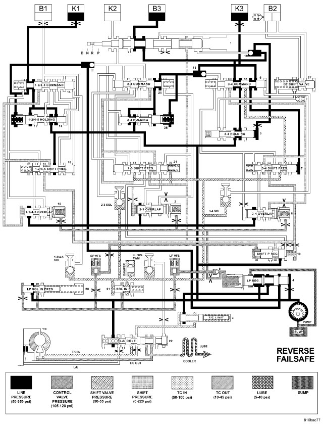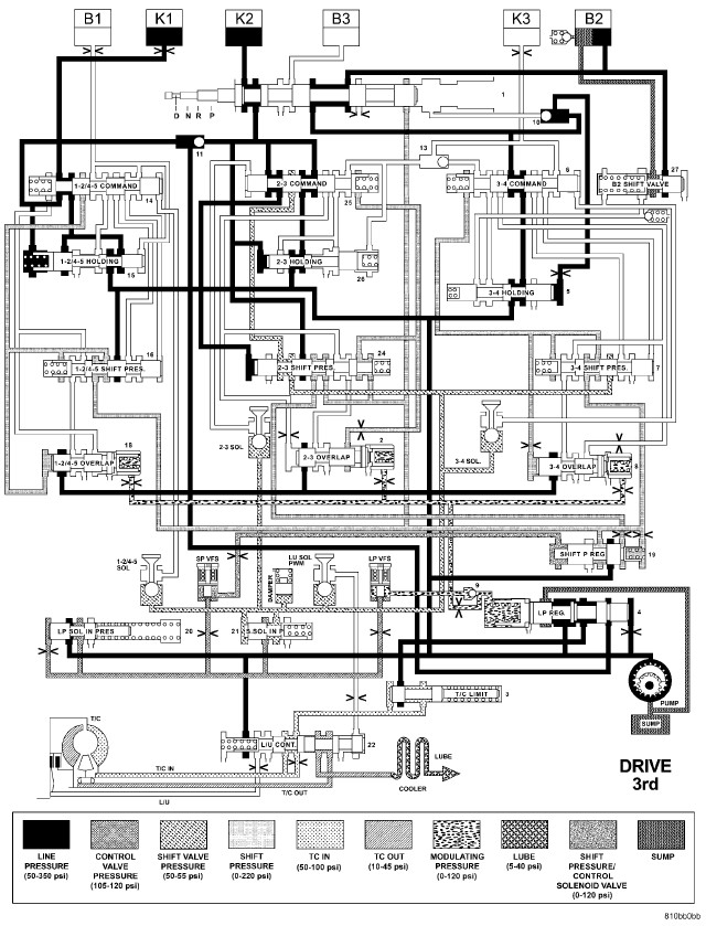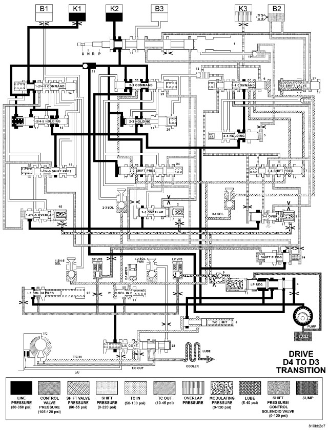 HYDRAULIC FLOW IN DRIVE - FOURTH TO THIRD GEAR TRANSITION
