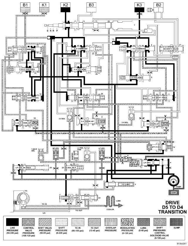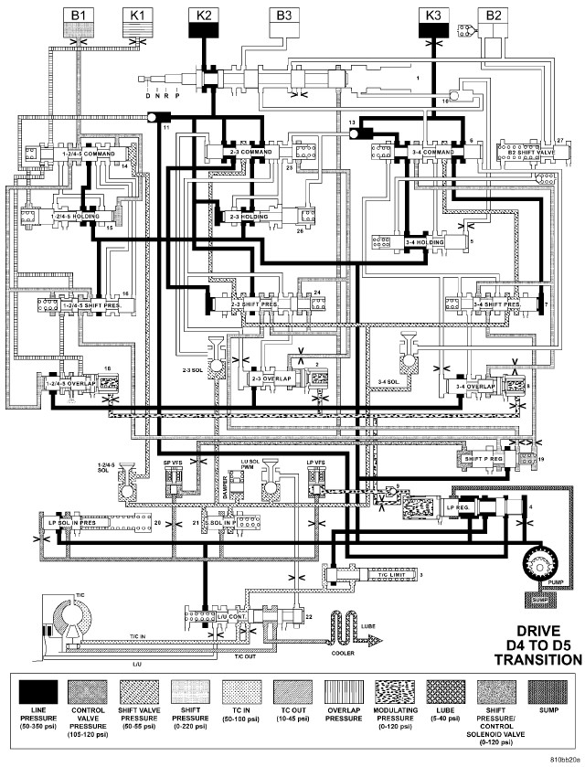 HYDRAULIC FLOW IN DRIVE - FOURTH TO FIFTH GEAR TRANSITION