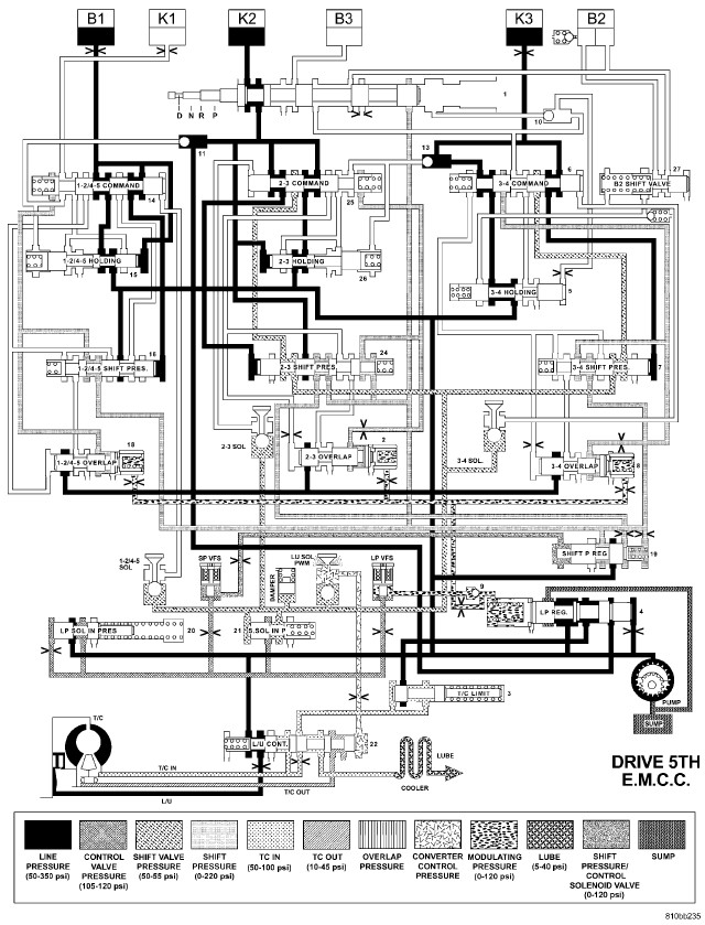 HYDRAULIC FLOW IN DRIVE - FIFTH GEAR - EMCC