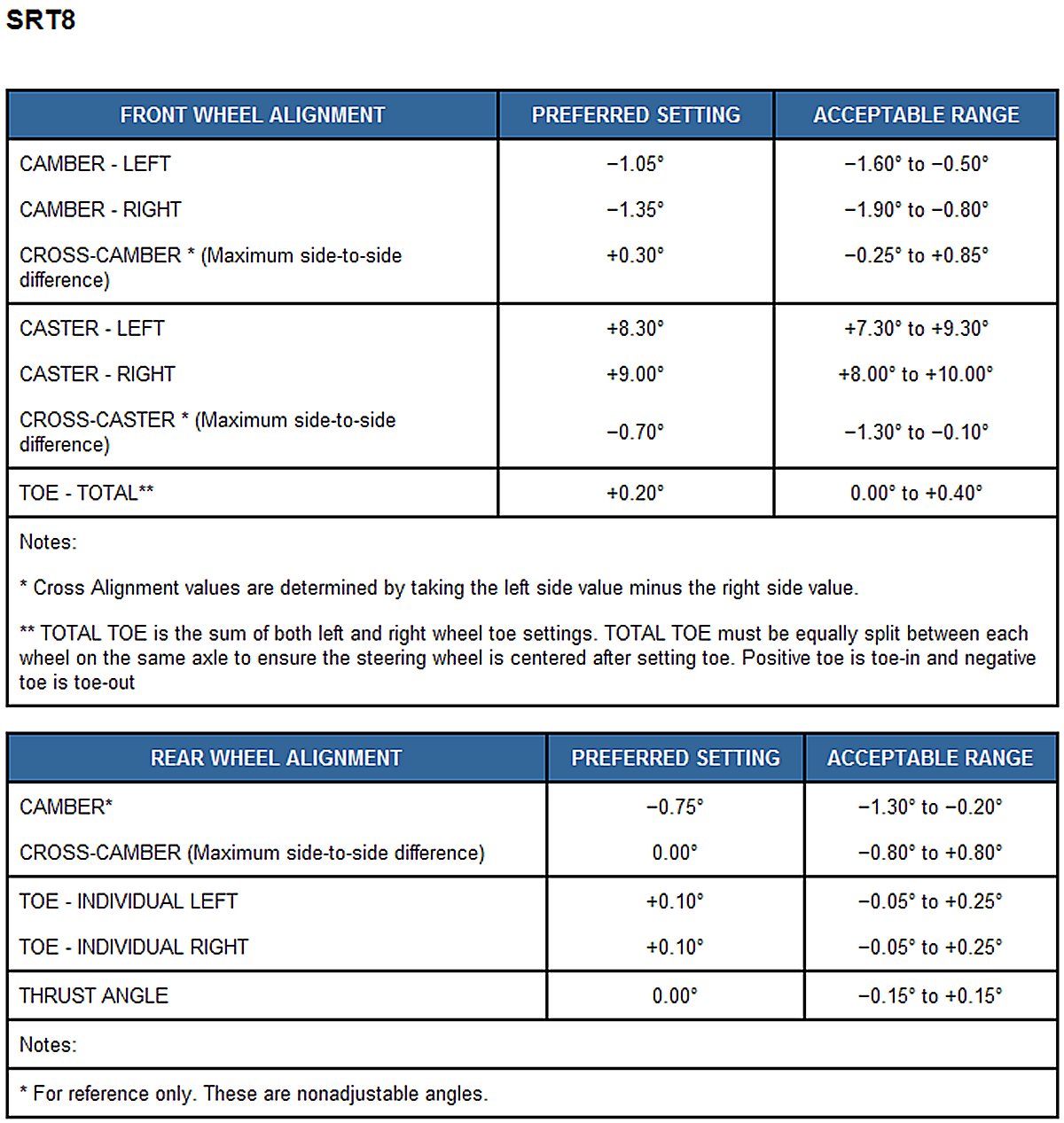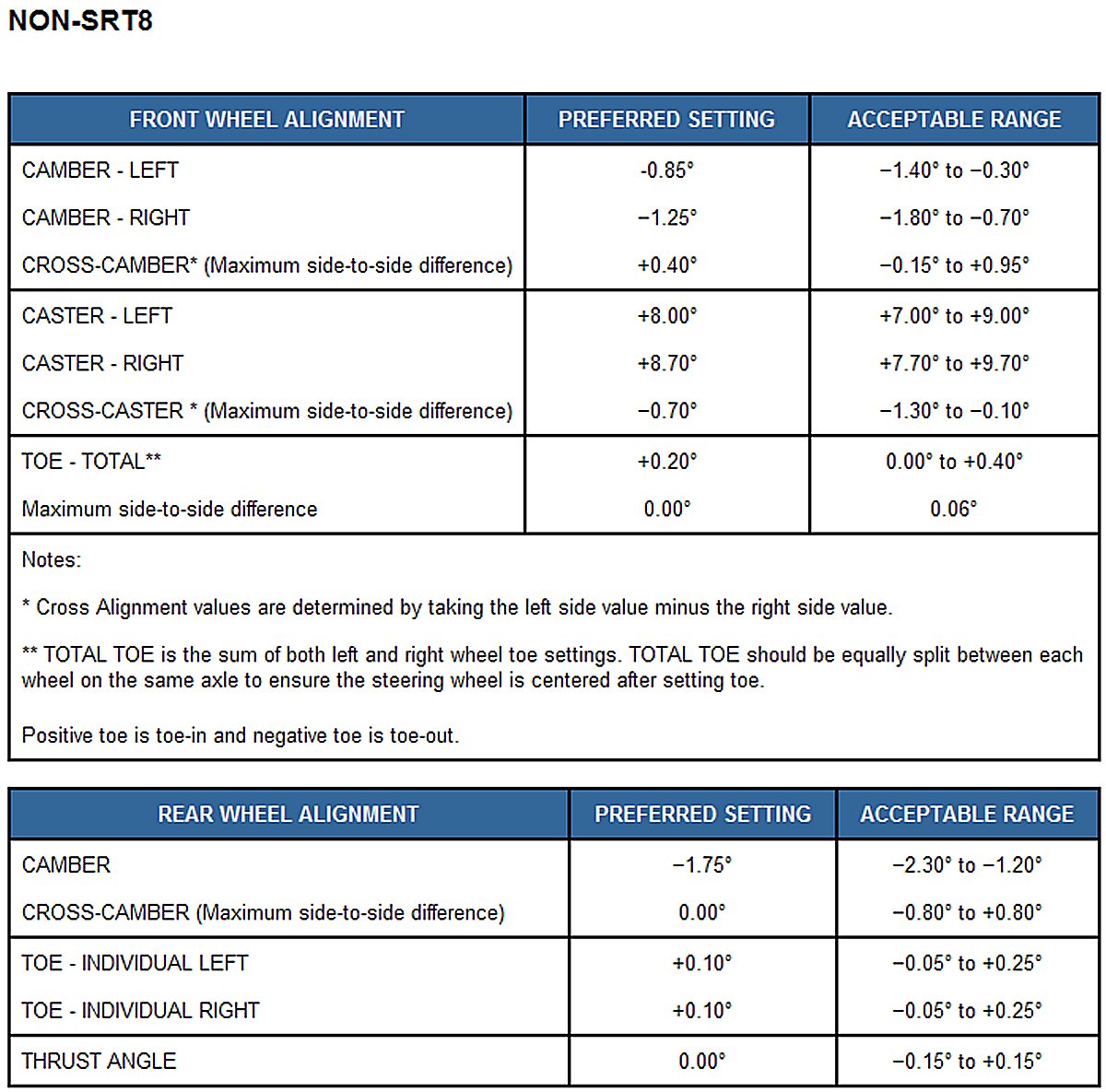 All wheel alignments are to be set at curb height. Refer to
