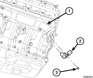 3. With the block heater fully seated, tighten bolt (1) to 2 Nm (17 in. lbs.).