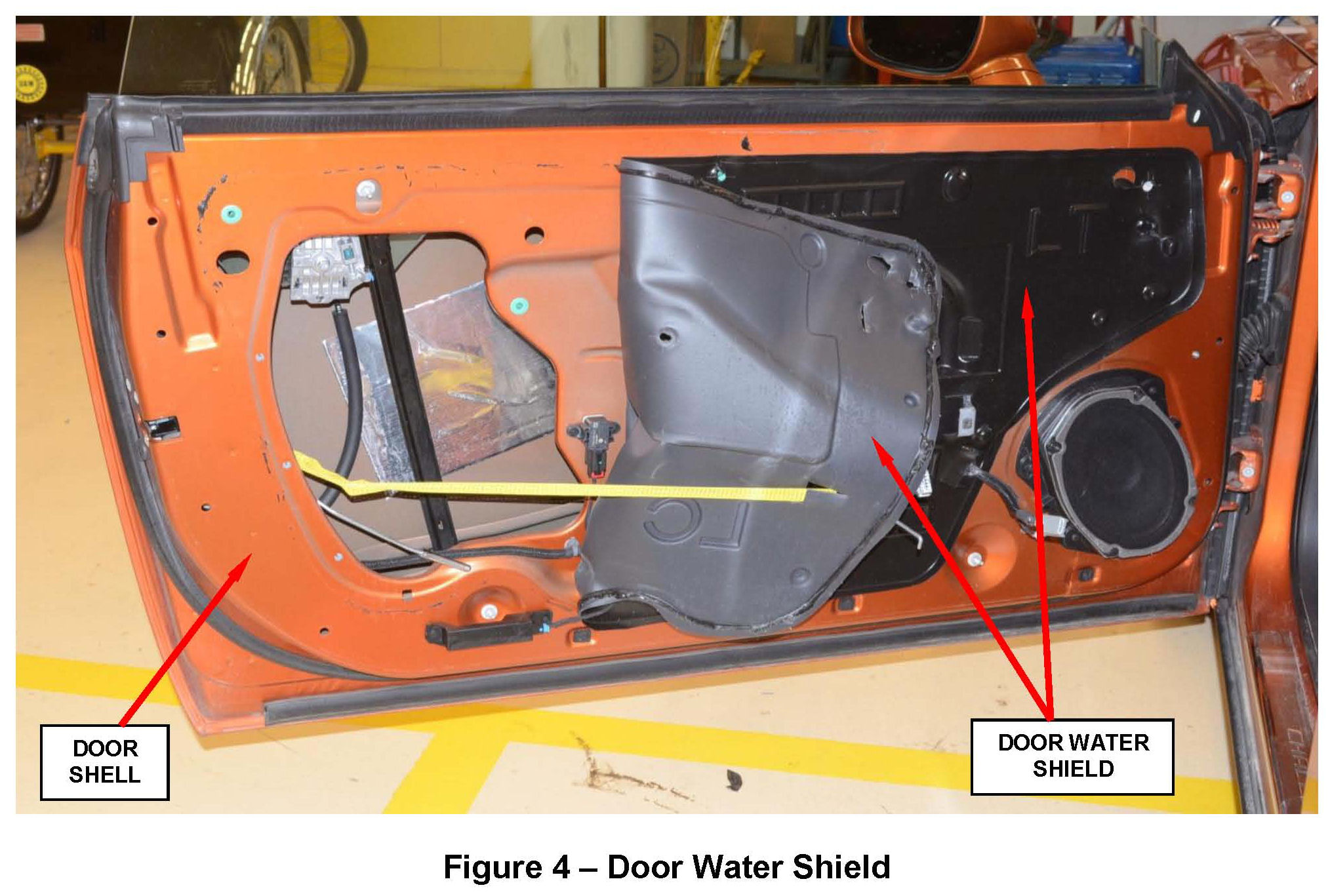 10. Place the door water shield back into position on the door shell (Figure 4).