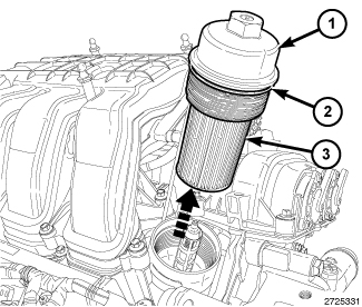 15. Install the new oil filter (3) into the oil filter cap (2).