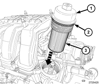 11. Remove the oil filter (3) from the oil filter cap (2).